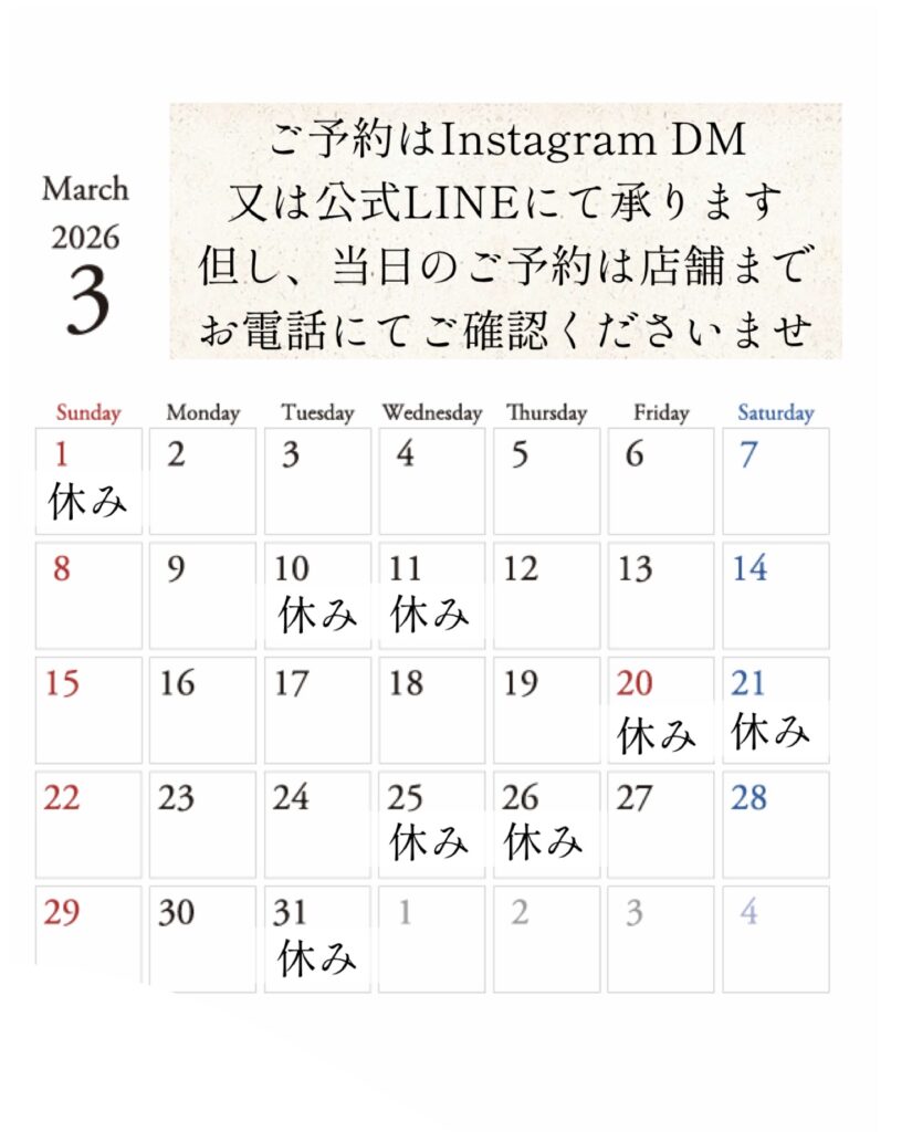 2026年 3月営業日カレンダー