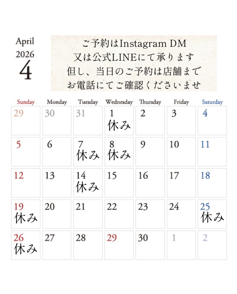 2026年 4月営業日カレンダー